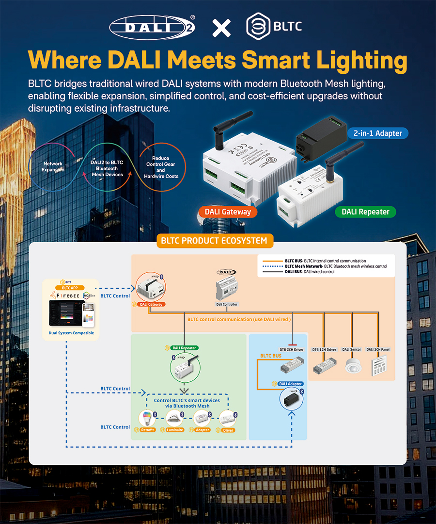 BLTC bridges traditional DALI systems with Bluetooth Mesh smart lighting.